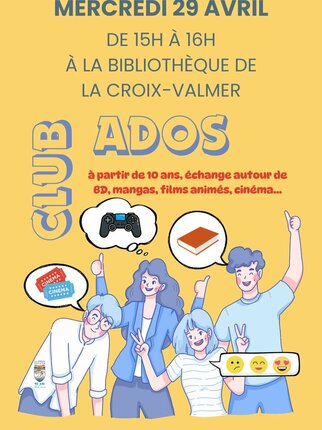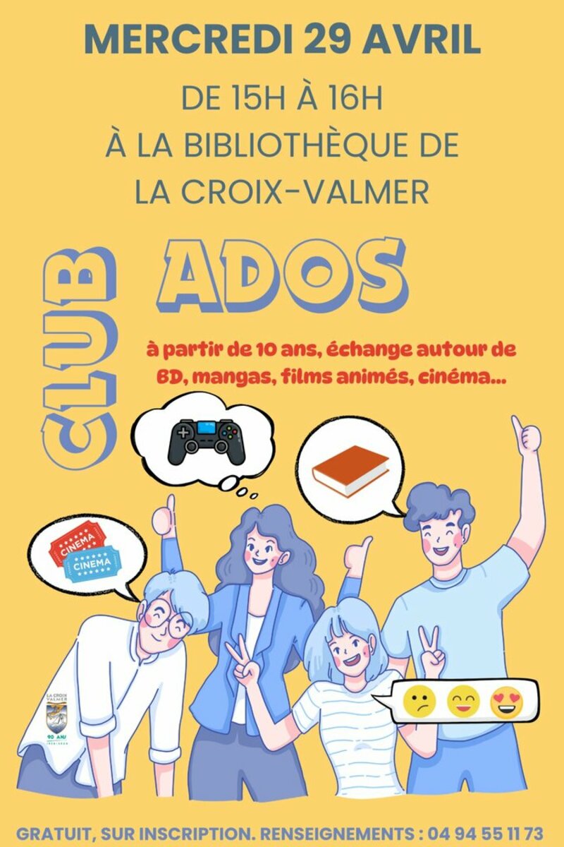 C'est le rendez-vous des ados ! Au programme : échange autour de BD, mangas, films animés, cinéma...