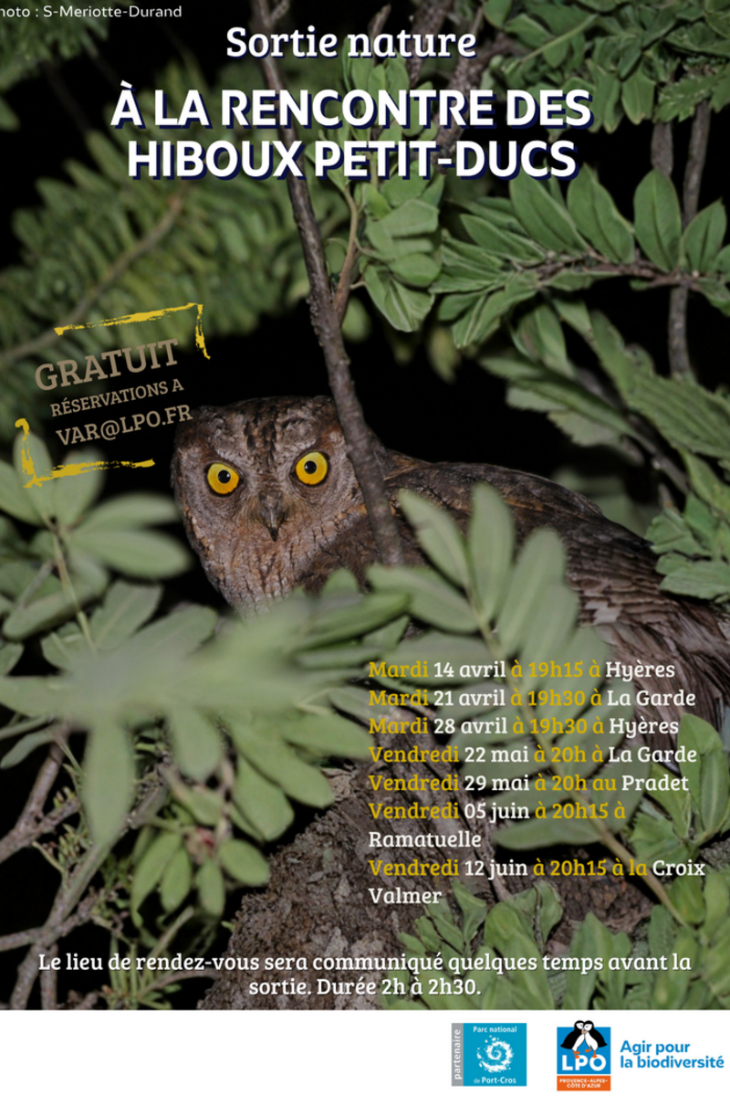 Le Parc national de Port-Cros et la Ligue pour la Protection des Oiseaux PACA (LPO PACA) invitent petits et grands à une opération de sciences participatives "À la rencontre des hiboux petit-ducs" sur le territoire du Parc national.