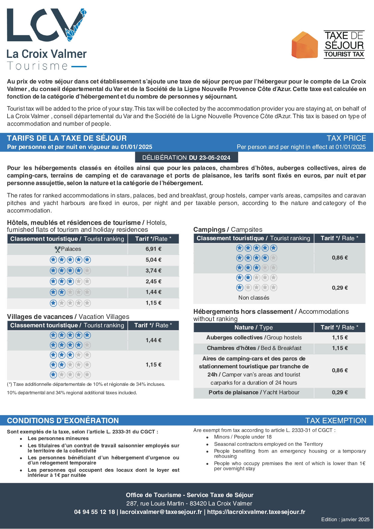 taxe de séjour 2025 la croix valmer tourisme